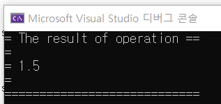 그러면 우리가 원하는 1.5가 나왔다. 즉 division operator는 좌우에 입력받는 값이 어떤 자료형을 가지느냐에 따라
