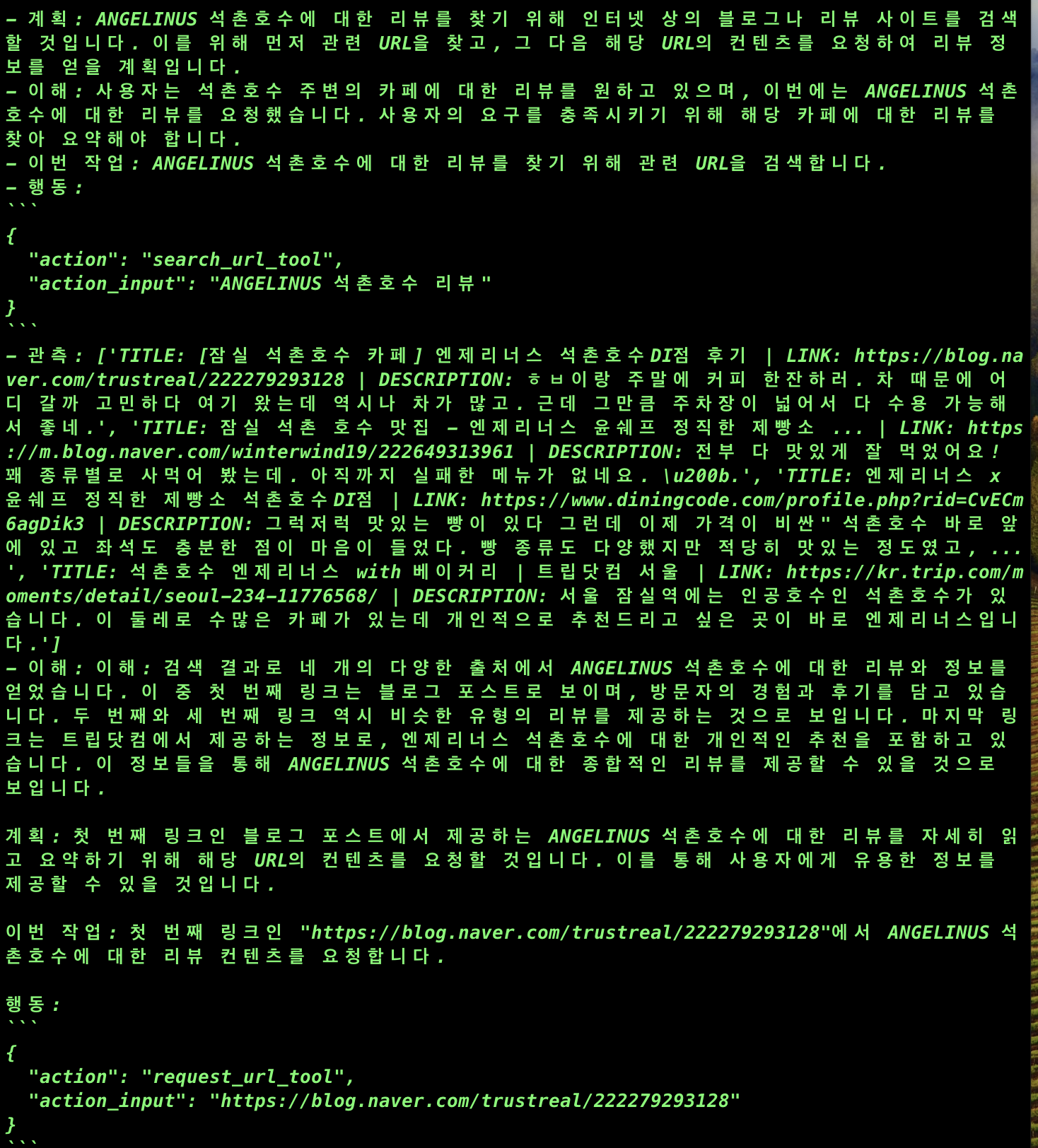 잘 수행하지 못하던 블로그 리뷰도 한국어로 검색한 결과를 한국어로 해석해서 접근하고 있다.
