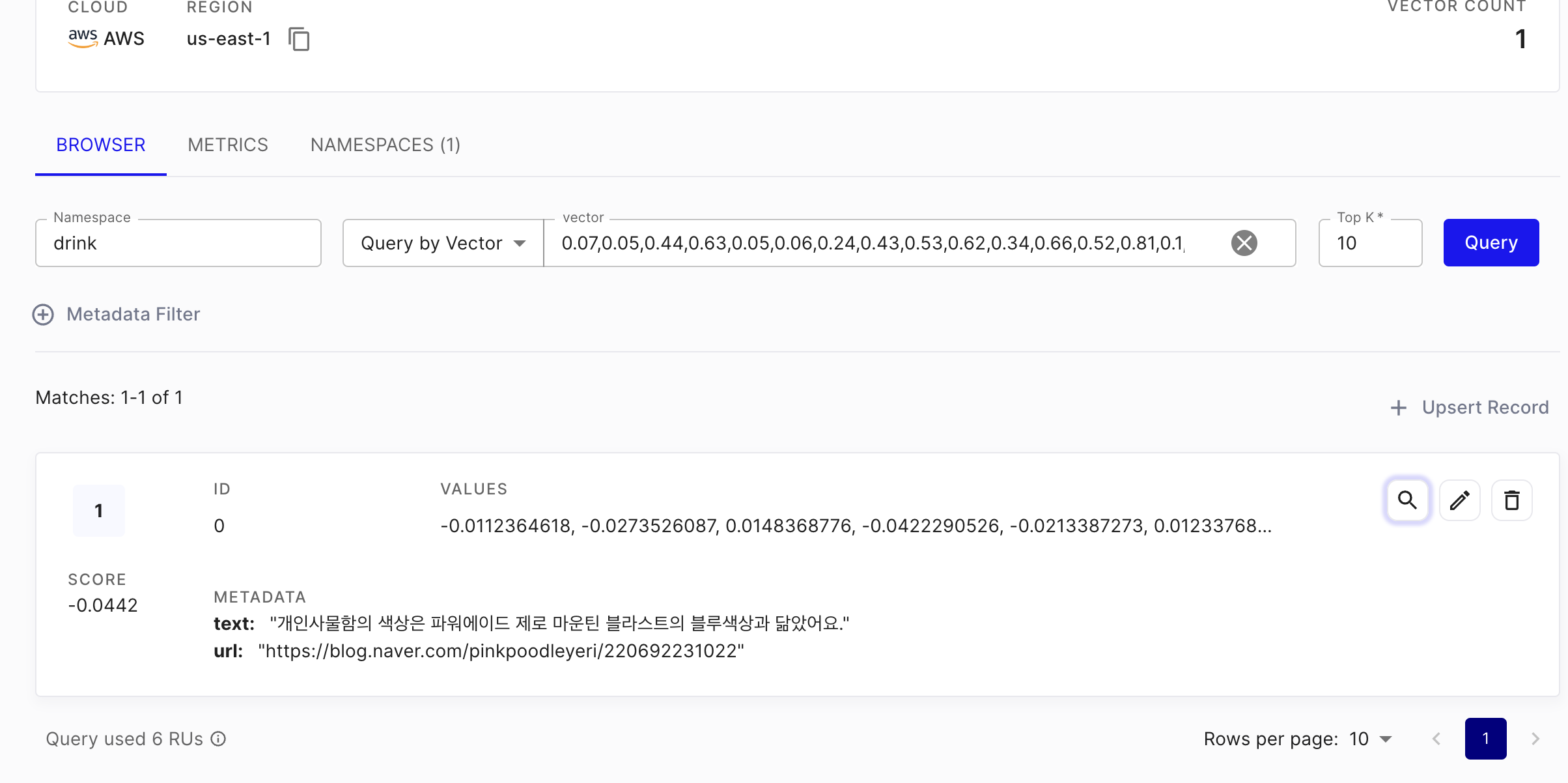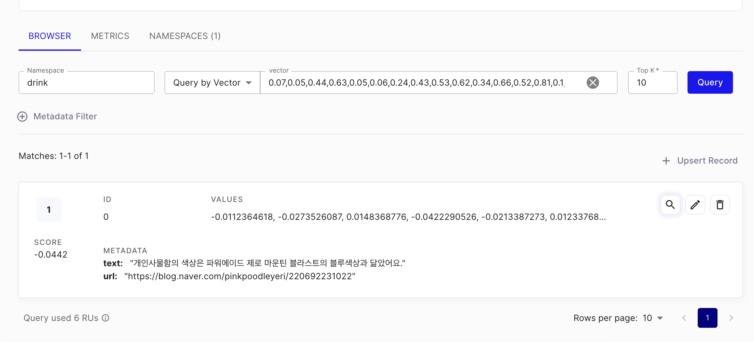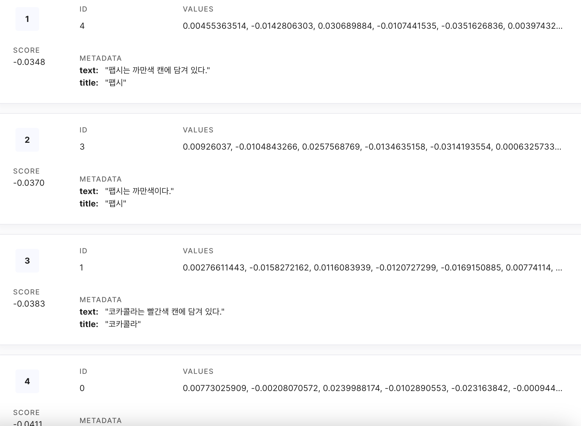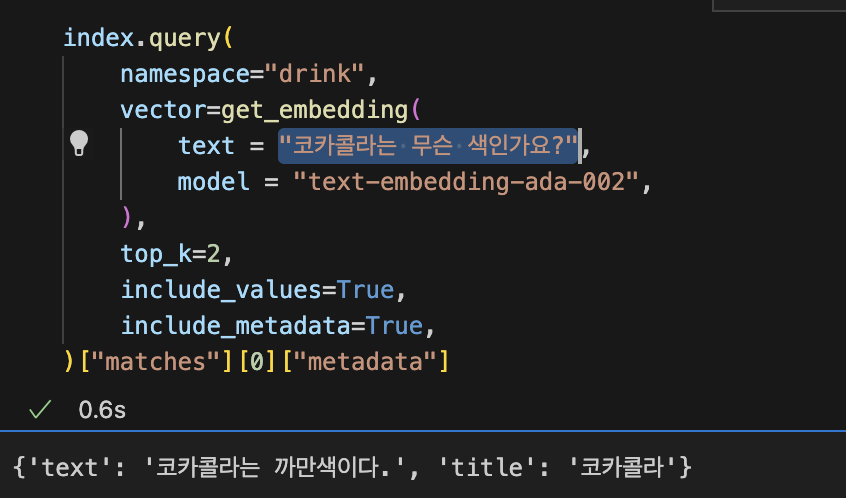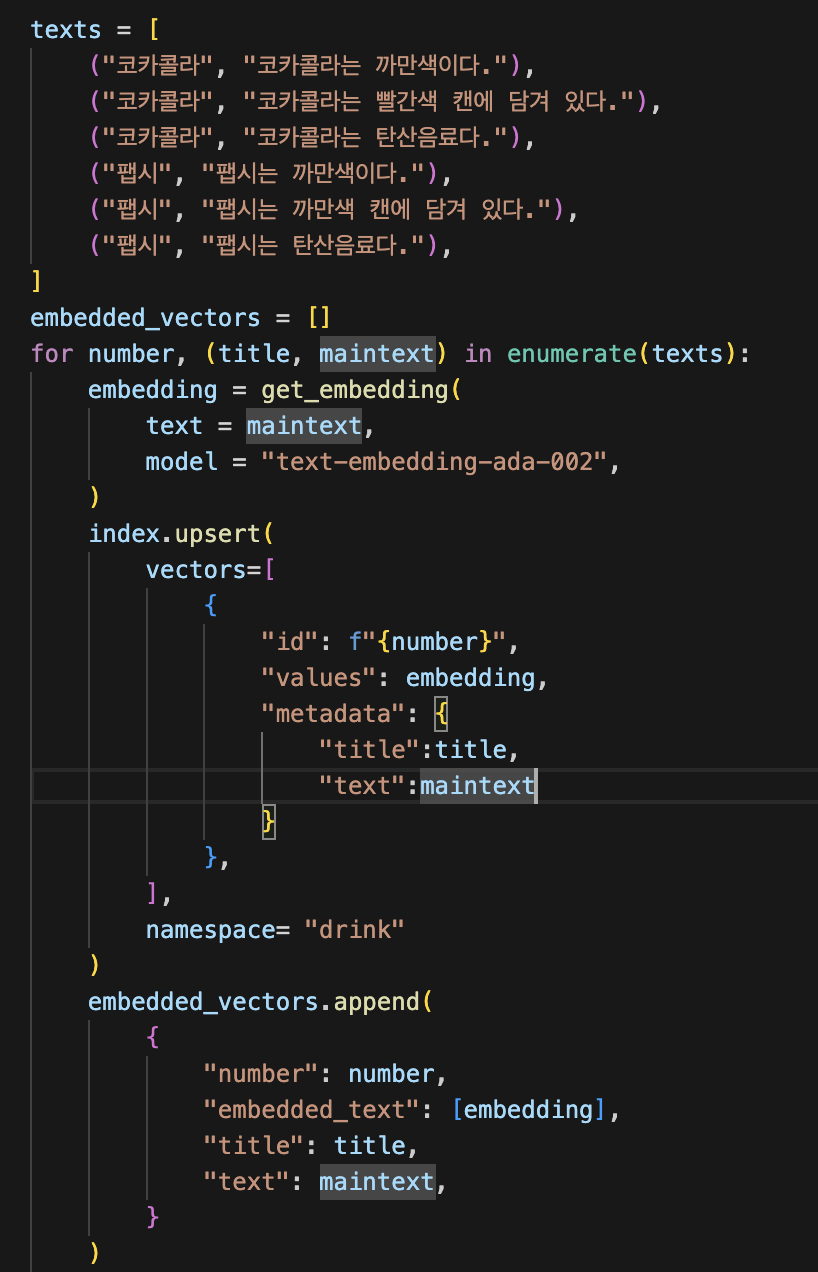 를 참고해서 아래와 같이 임베딩 후 벡터디비에 저장해 보았다.