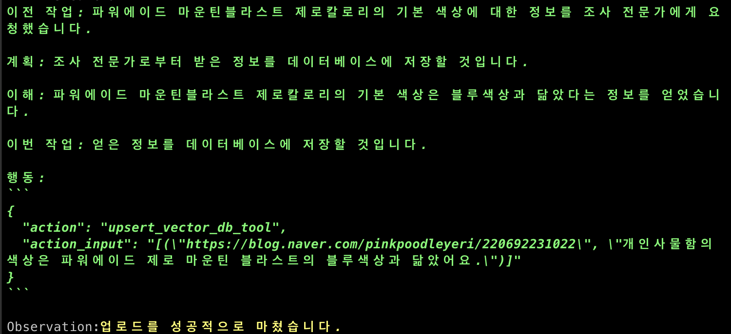 여러대의 에이전트를 두면서 느낀점인데 서로 소통할때 어떤 포멧의 문자열을들 주고 받을지 잘 설정하는 것이 좋다.