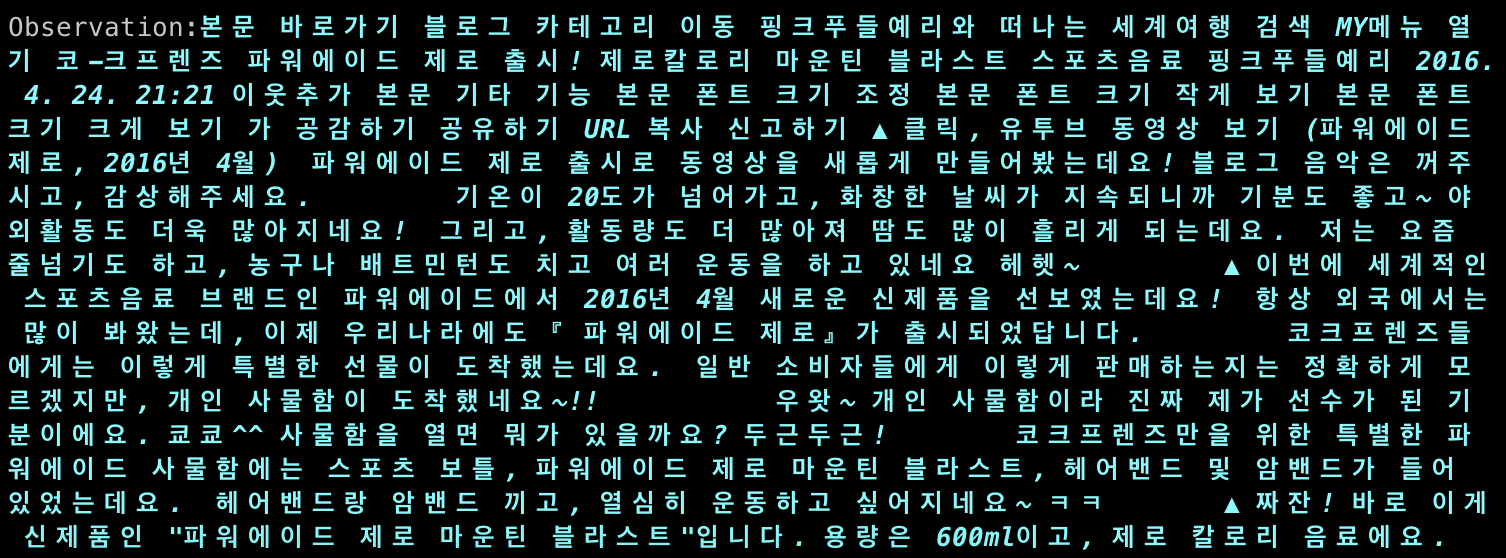 예를 들면 일반적이지 않은 파워에이드 제로칼로리에 대해서 물어보자.