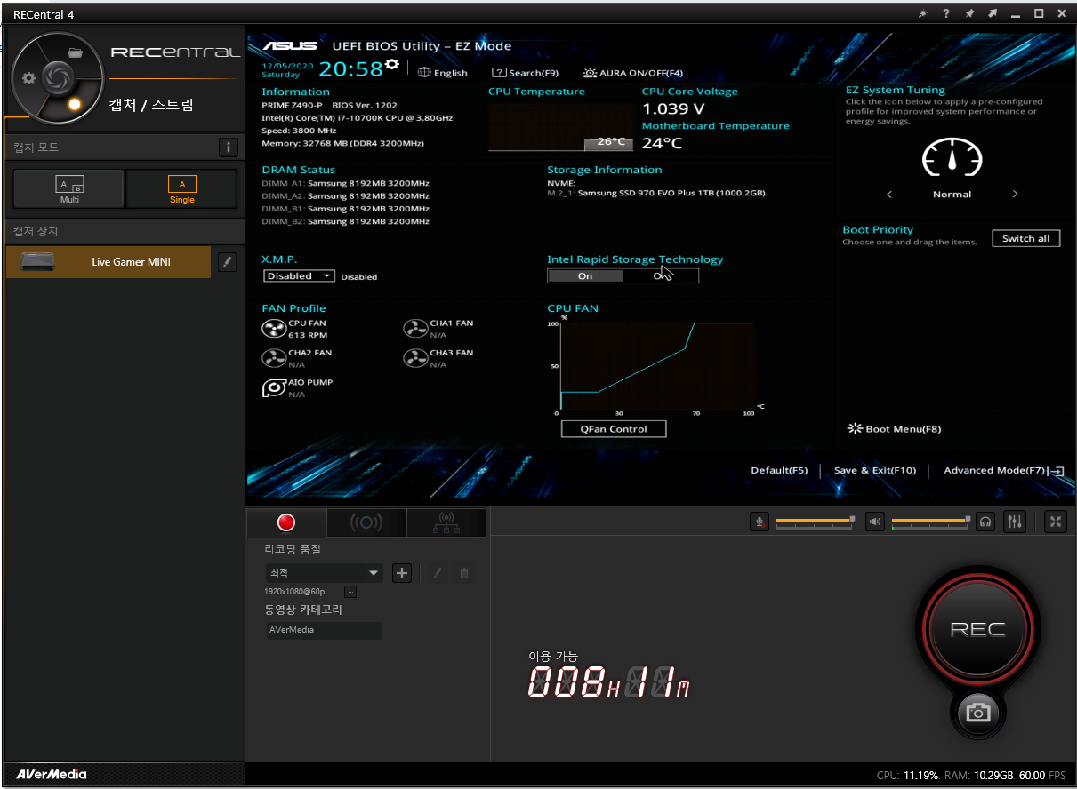 바이오스 화면도 무리없이 캡쳐하고 저장해둘 수 있다. 굳.