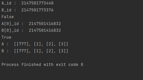 이렇게 A의 리스트 주소와 B의 리스트 주소는 달라지게 된다.