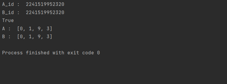 A의 주소와 B의 주소가 같은 것을 알 수 있다.