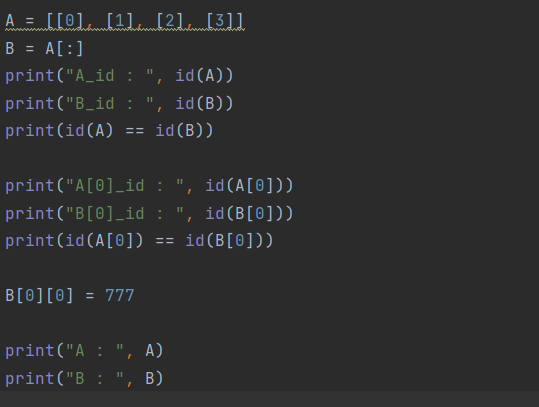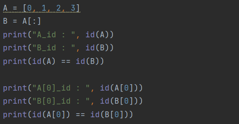 그러니까 저 [0, 1, 2, 3] 이라는 리스트는 사실 A고 B고 상관없이