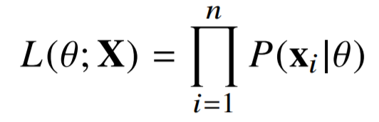 데이터공간 X에서 각 데이터 x_i가 독립적으로 추출될 경우 가능도는 아래와 같은데