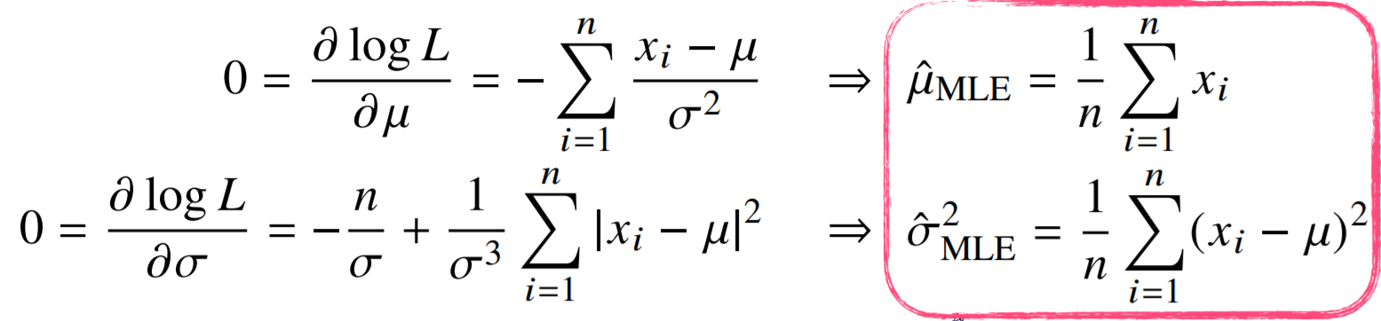 이것은 우리의 모델이 정규분포라는 것을 가정한 최대가능도법이다.