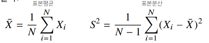 특이한 점은 표본 분산을 구할때 총 확률변수의 수 보다 하나 작은 수로 나눠준다는 것인데