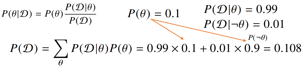 만약 질병 관련 예시를 든다면 D를 양성 판정, \theta를 실제감염 으로 이야기 하면 된다.