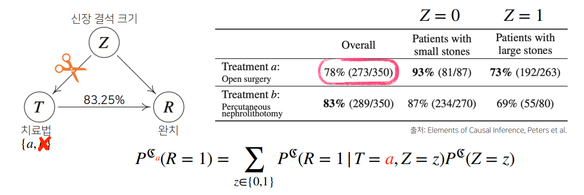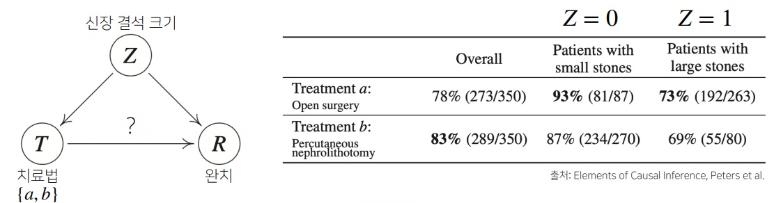 신장결석의 크기라는 변수를 고려하지 않고 치료법의 결과만 놓고 보면