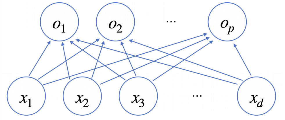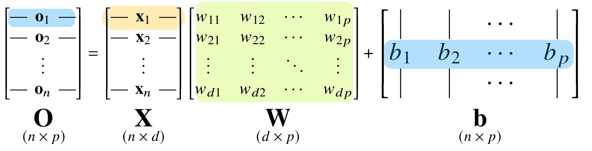 화살표가 W의 한 원소 역할을 하게 되고 데이터와 O는 이 W로 연결되어 있다.