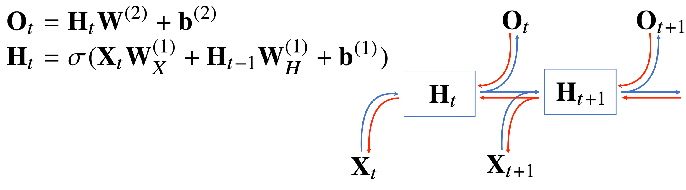 Back Propagation Trough Time (BPTT) 라는 독특한 방식으로 역전파가 일어난다.