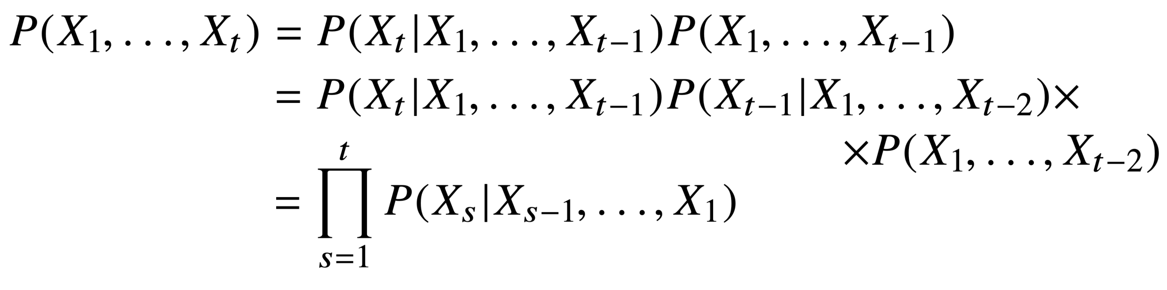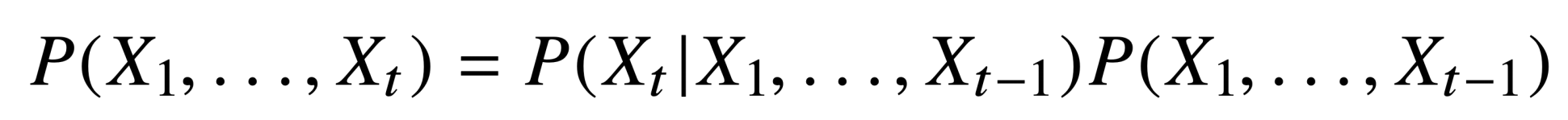현재 주어진 데이터에 관한 확률은 이전의 모든 데이터가 given된 상태의 conditianal probability를 따르고